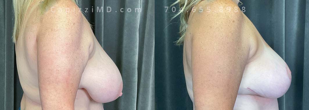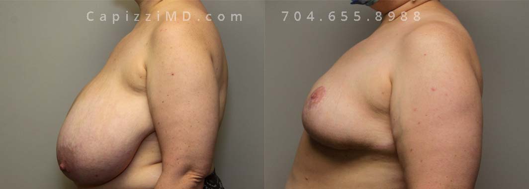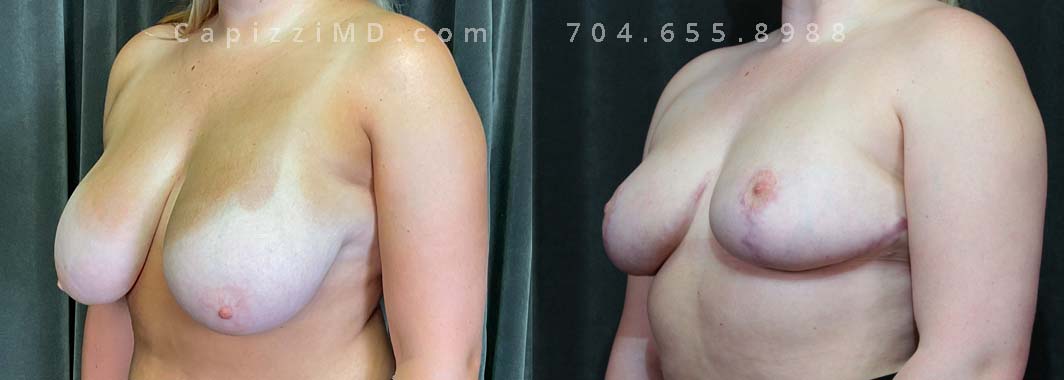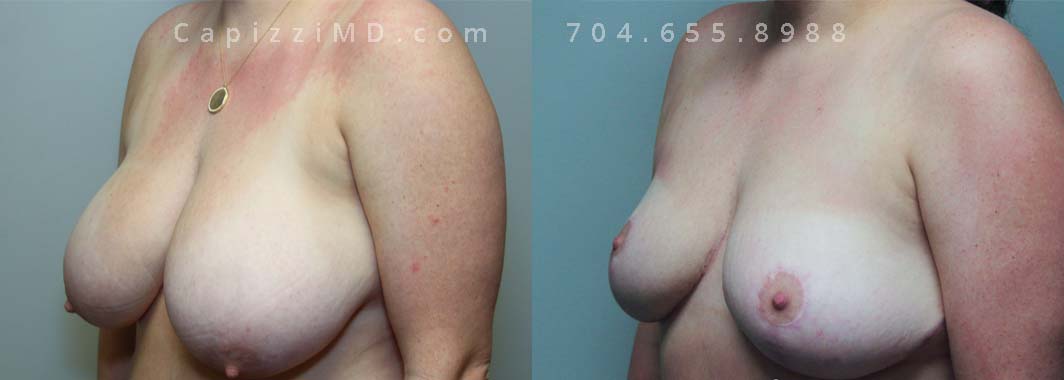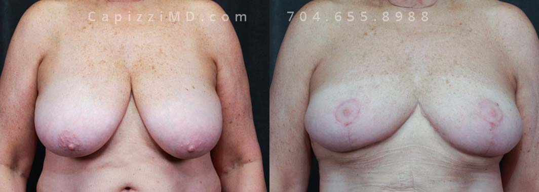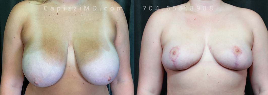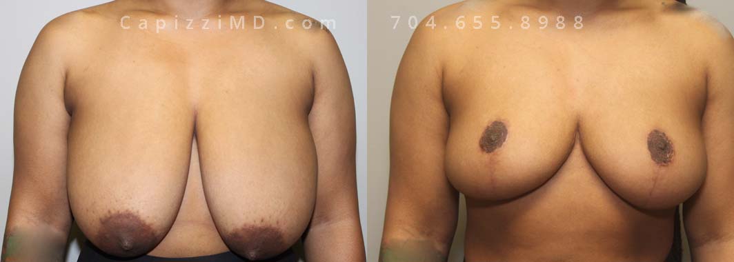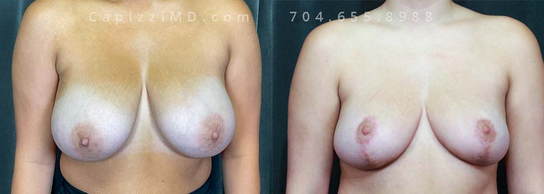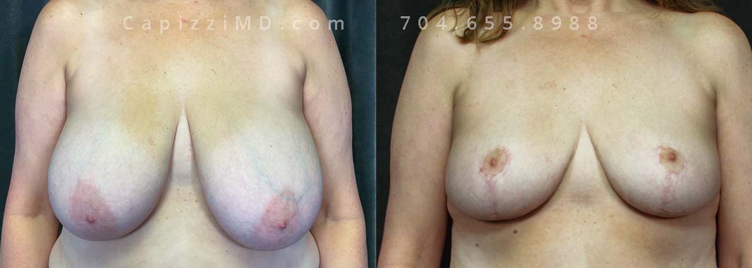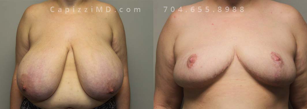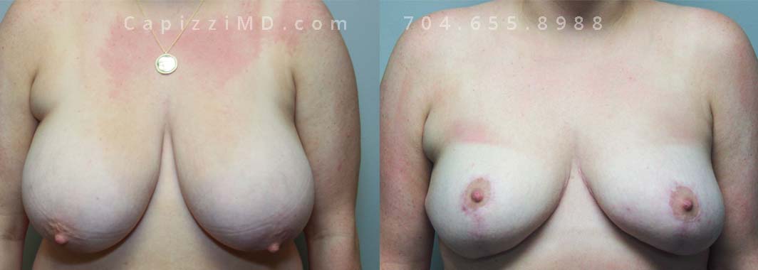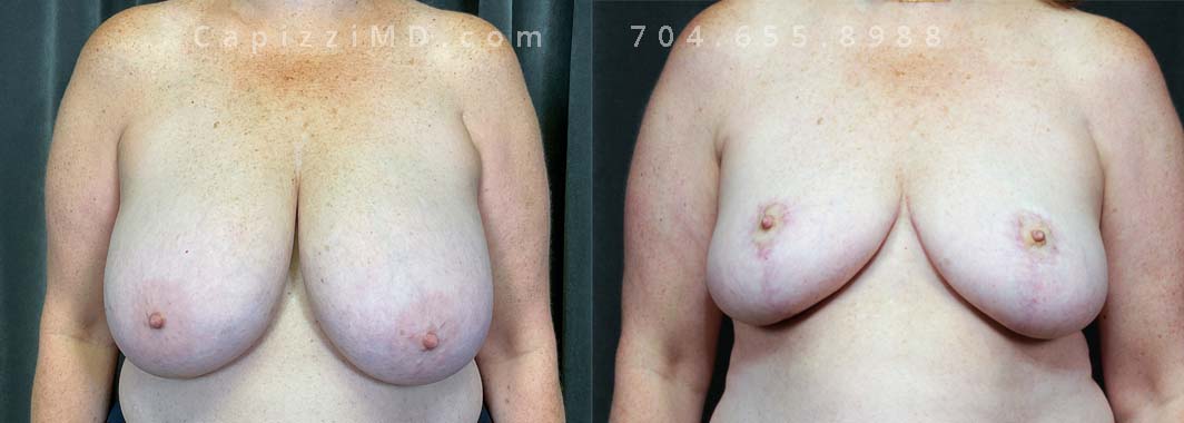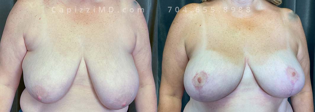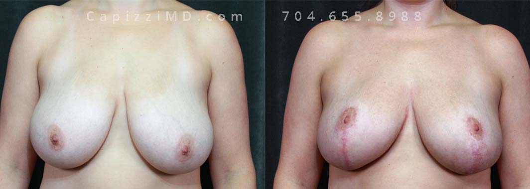 This patient had large breasts that were giving her daily pain in her neck and back. She wanted to realign her nipples, improve symmetry, and reduce the size of her breasts.