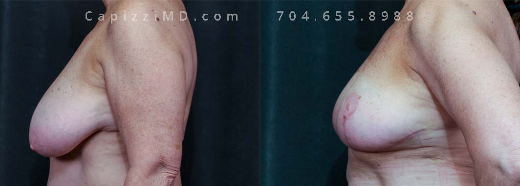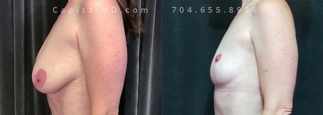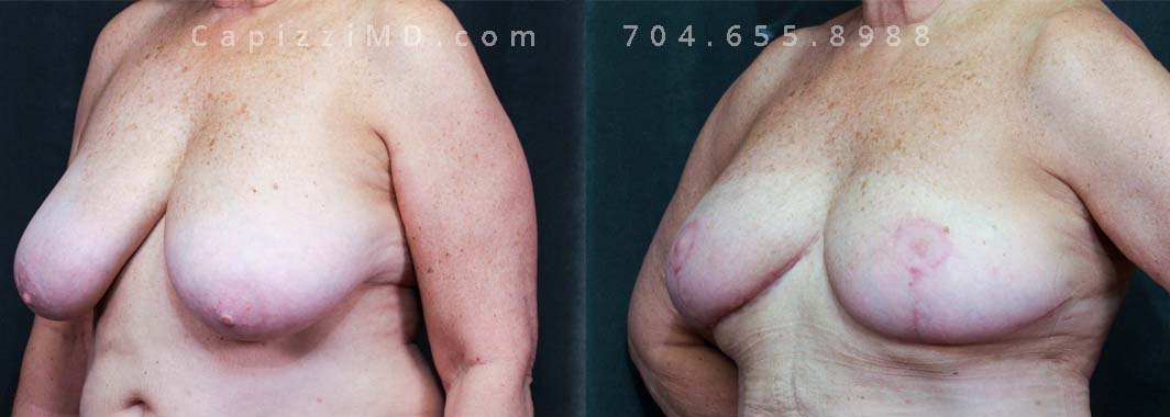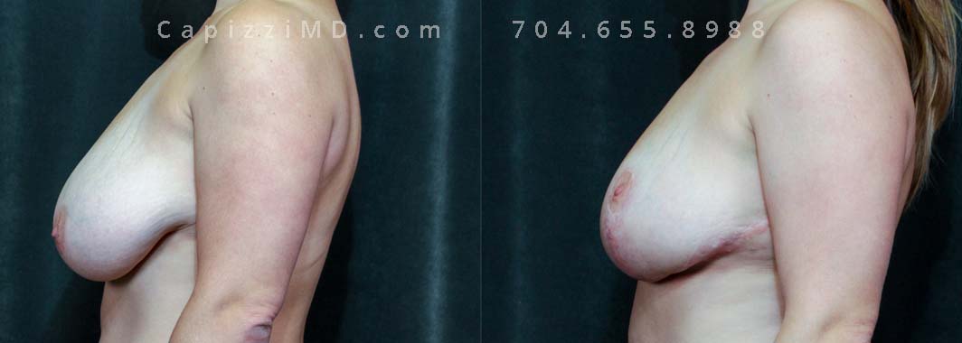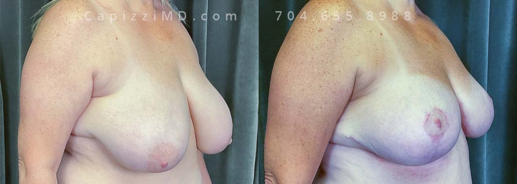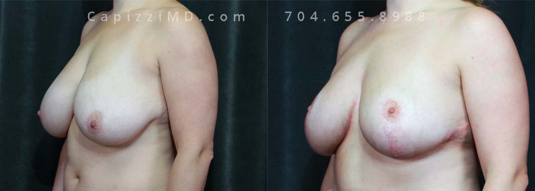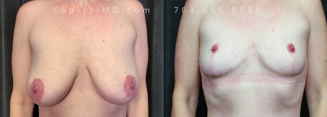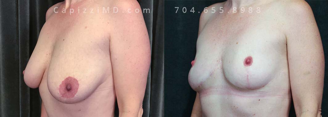 The patient had children and noticed that her breasts stayed large after she discontinued nursing. A breast reduction reduced the size of her breasts, removed excess skin, and realigned her nipples.