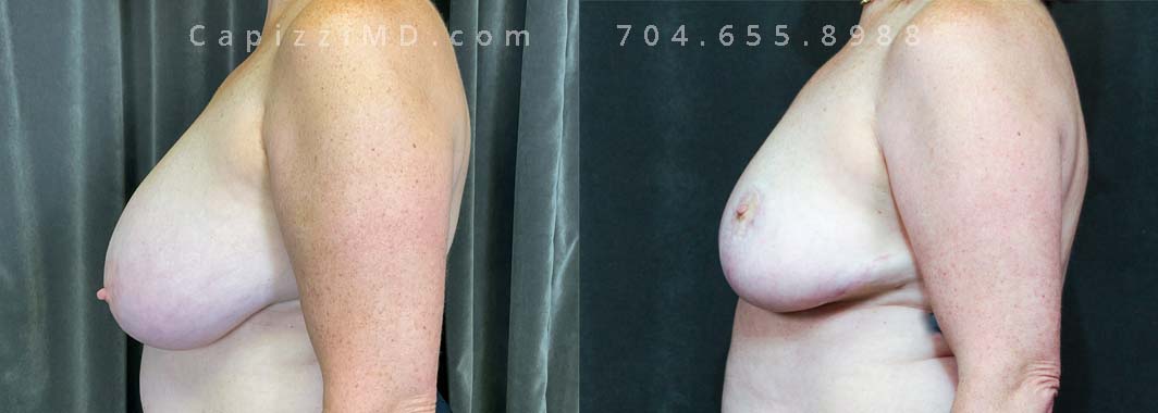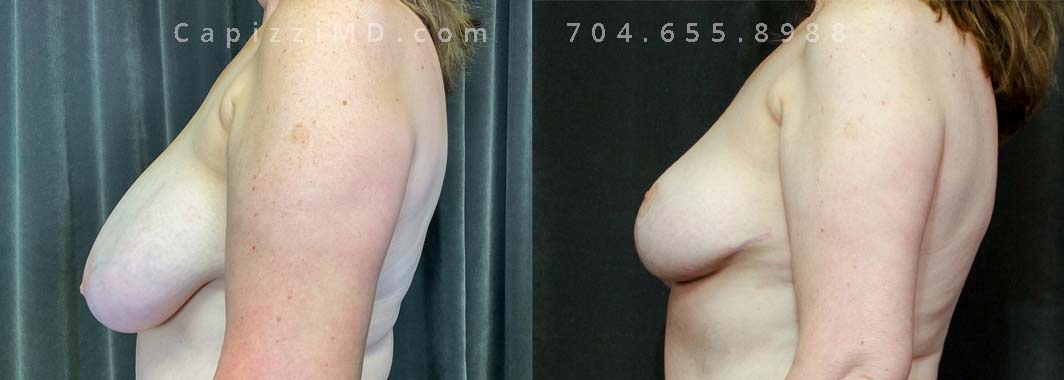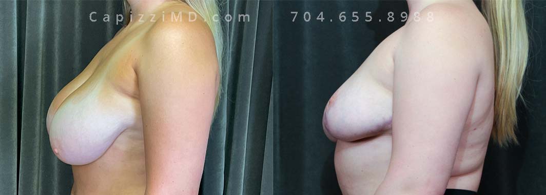 This patient had larger breasts than desired and wanted to have a smaller, more perky look. A breast reduction alleviated physical symptoms such as back/neck pain while also giving her a naturally smaller breast shape.