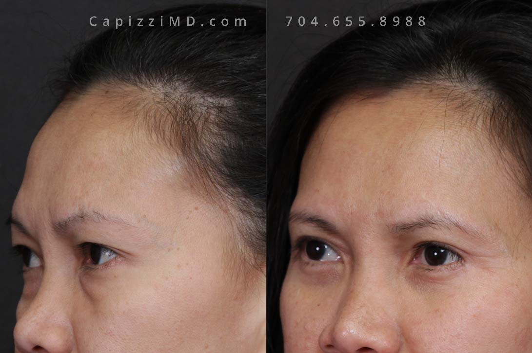 This patient wanted to achieve a more youthful appearance while remaining natural. An upper blepharoplasty and hairline browlift were recommended to achieve her beautiful results.