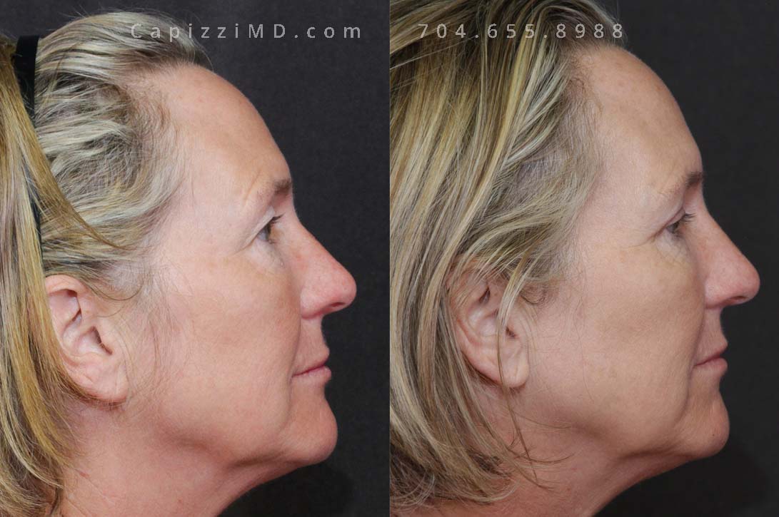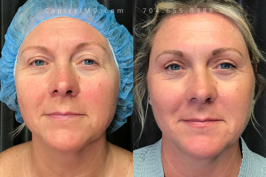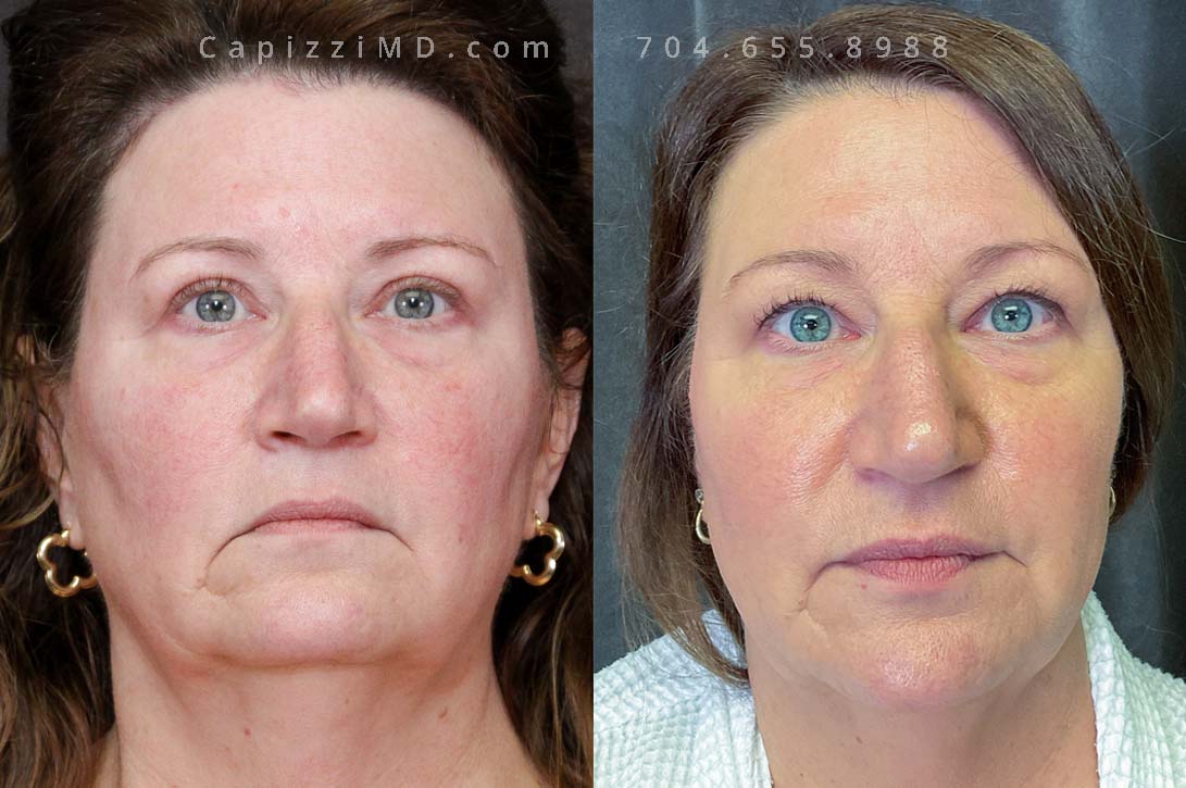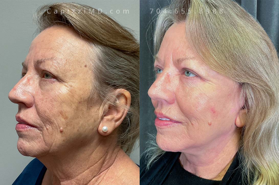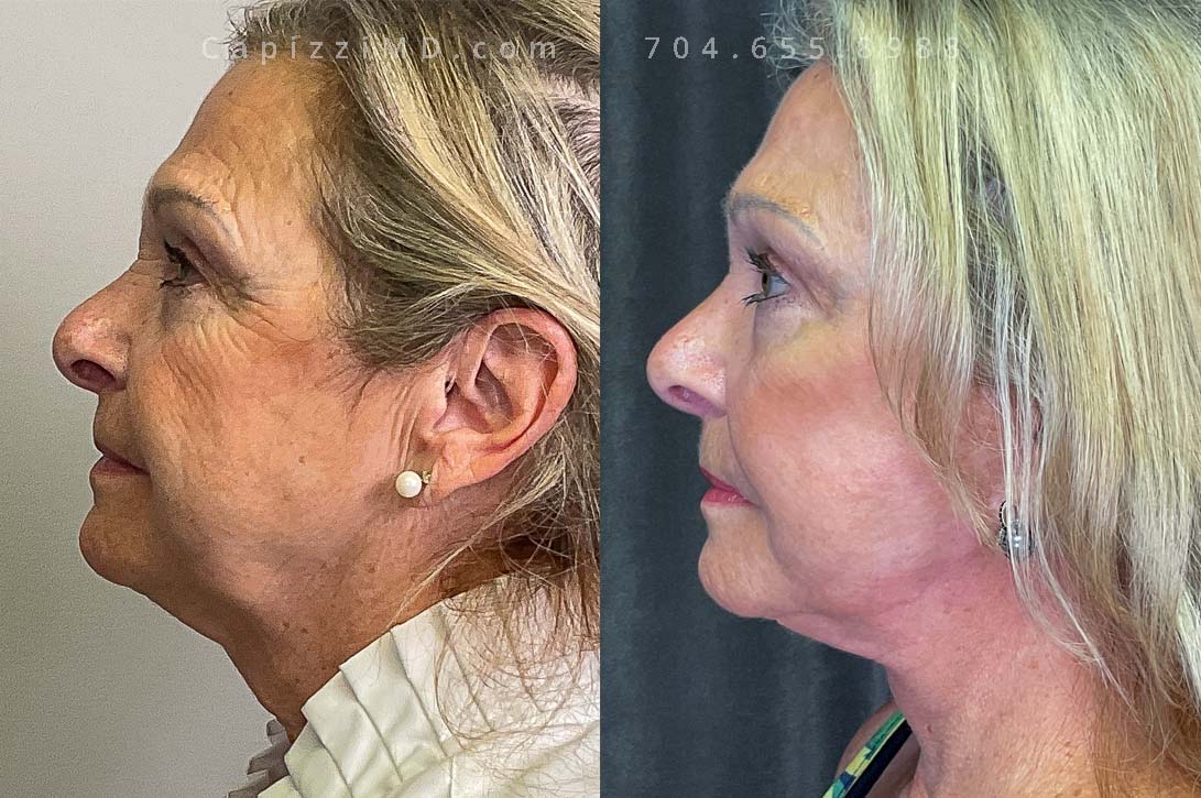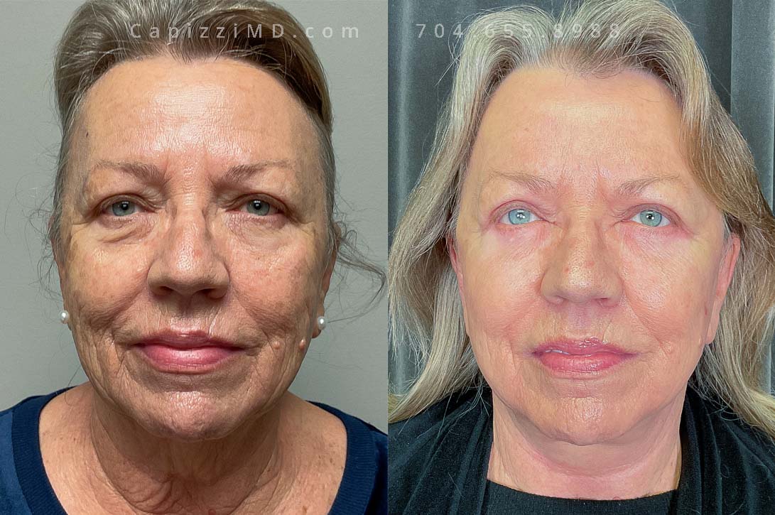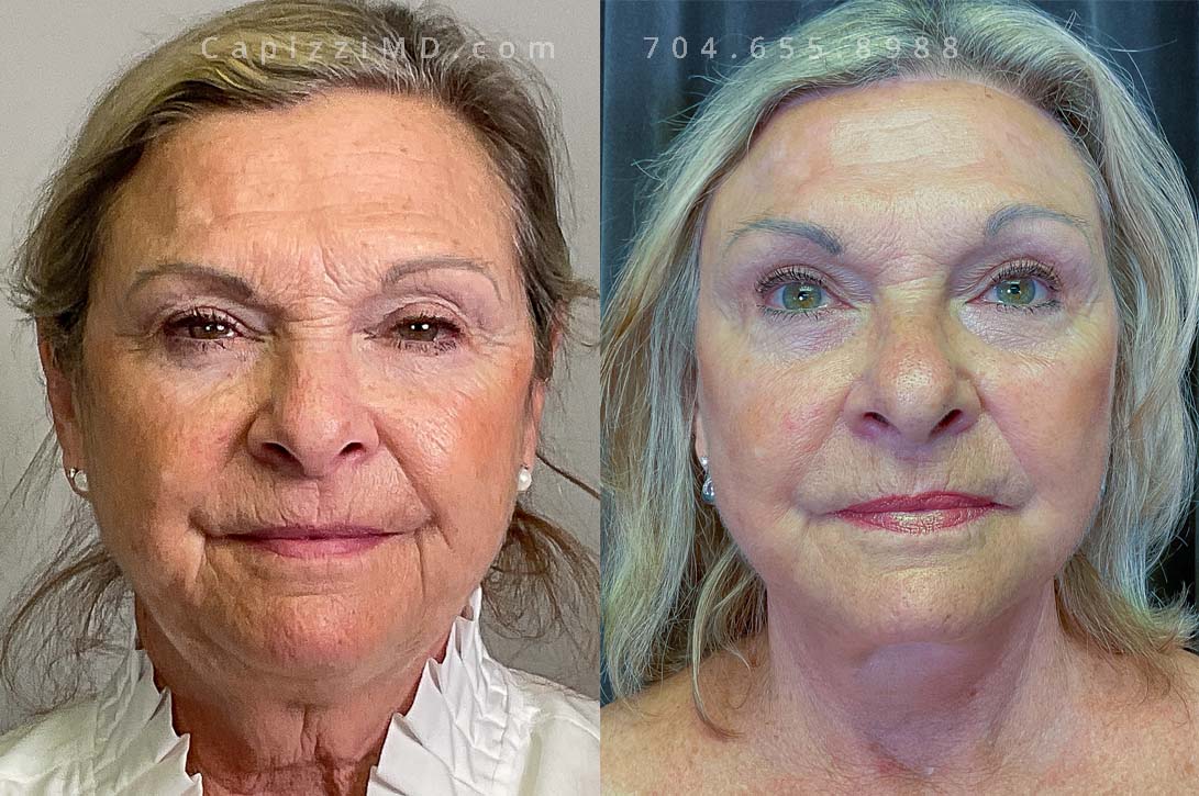 This patient wanted to rejuvenate her face and received a facelift, neck lift, brow lift, and upper eyelid lift along with a MicroLaser Peel to all treated areas to resurface her skin texture and improve the longevity of results.