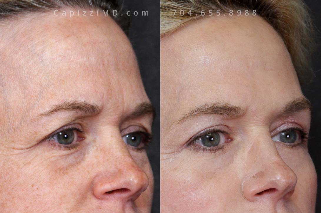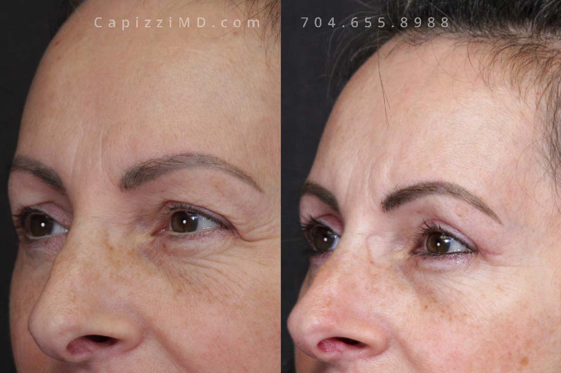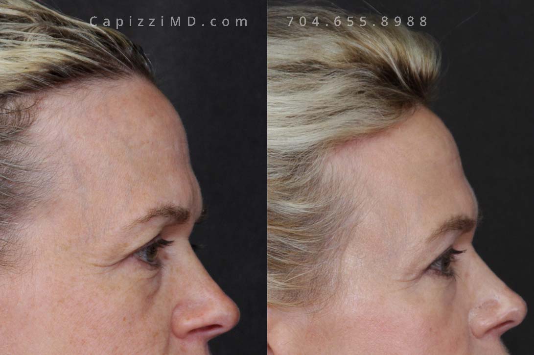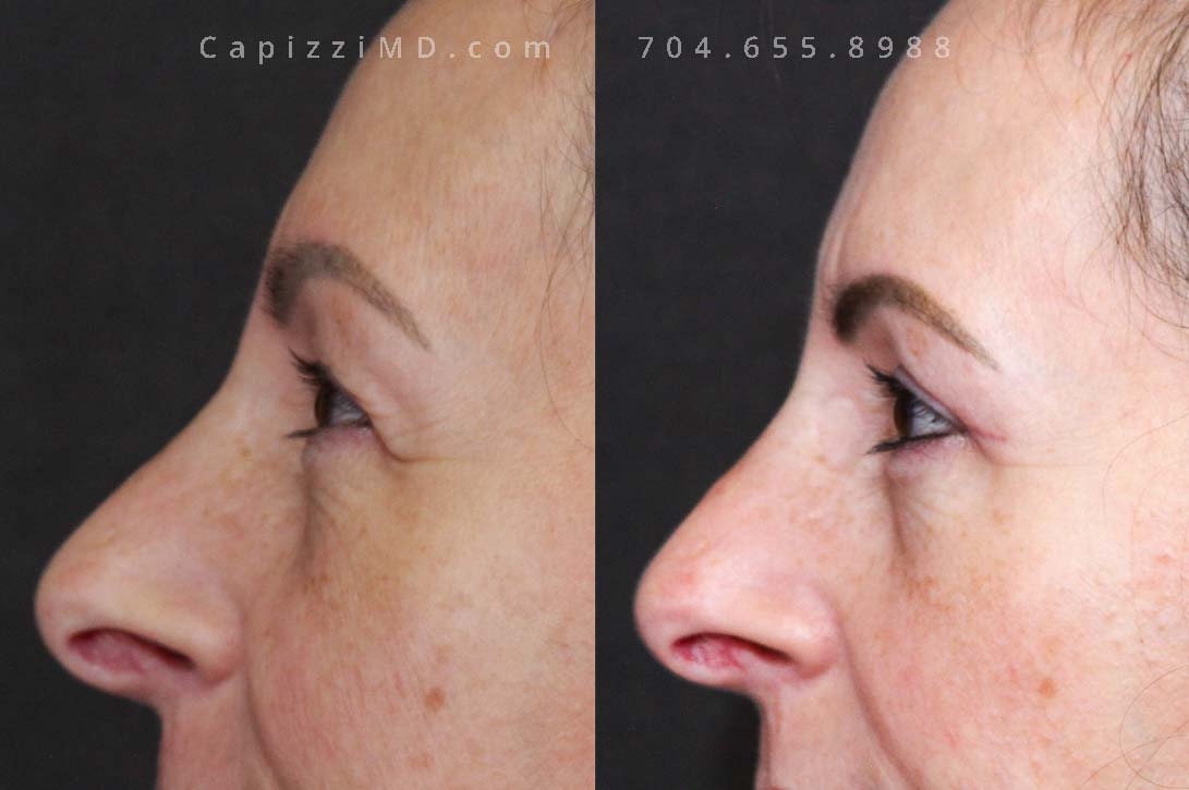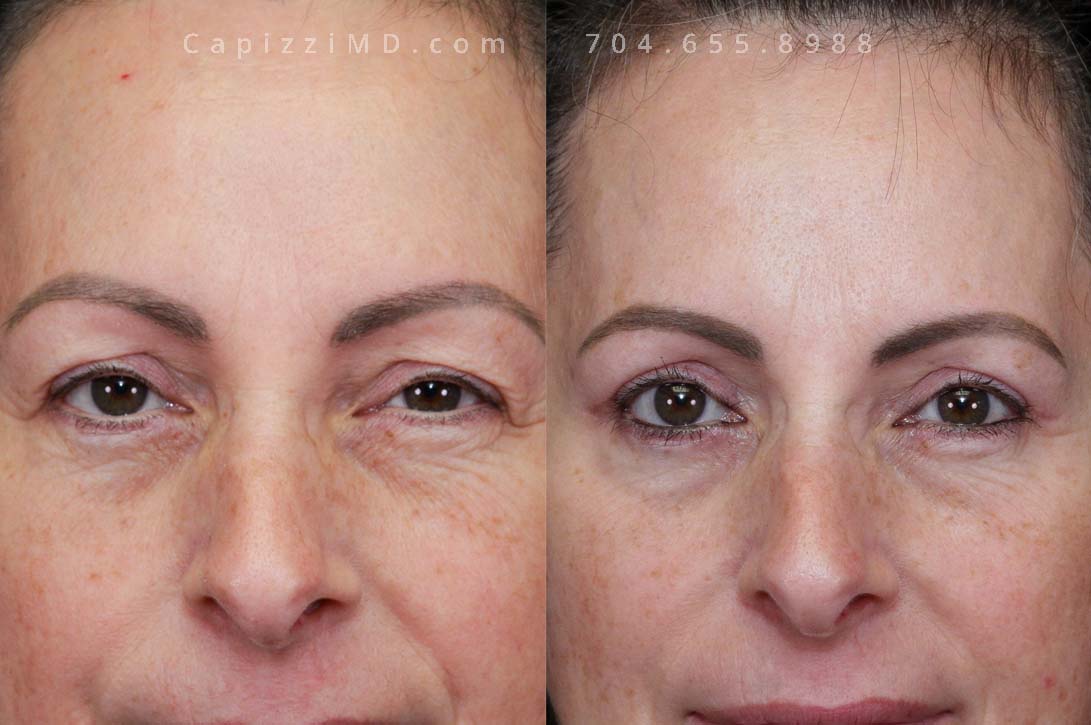 This patient wanted to lift and rejuvenate her upper face that had started to appear heavy. She had significant overhang in her upper lids. She had a temporal brow lift and upper blepharoplasty which resulted in a more youthful, alert appearance.