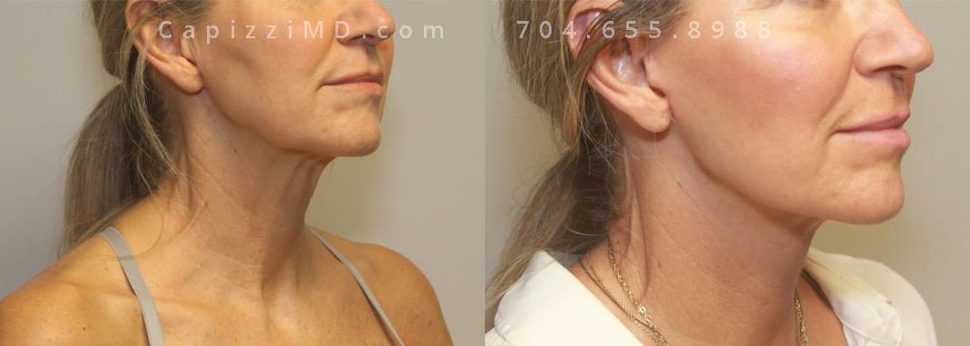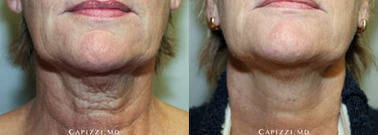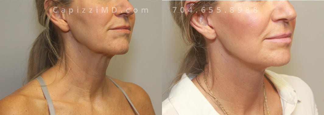 This patient’s main concern was the loss of elasticity in her neck. A necklift removed excess skin and tightened up her fascial structures for a beautiful, youthful result.