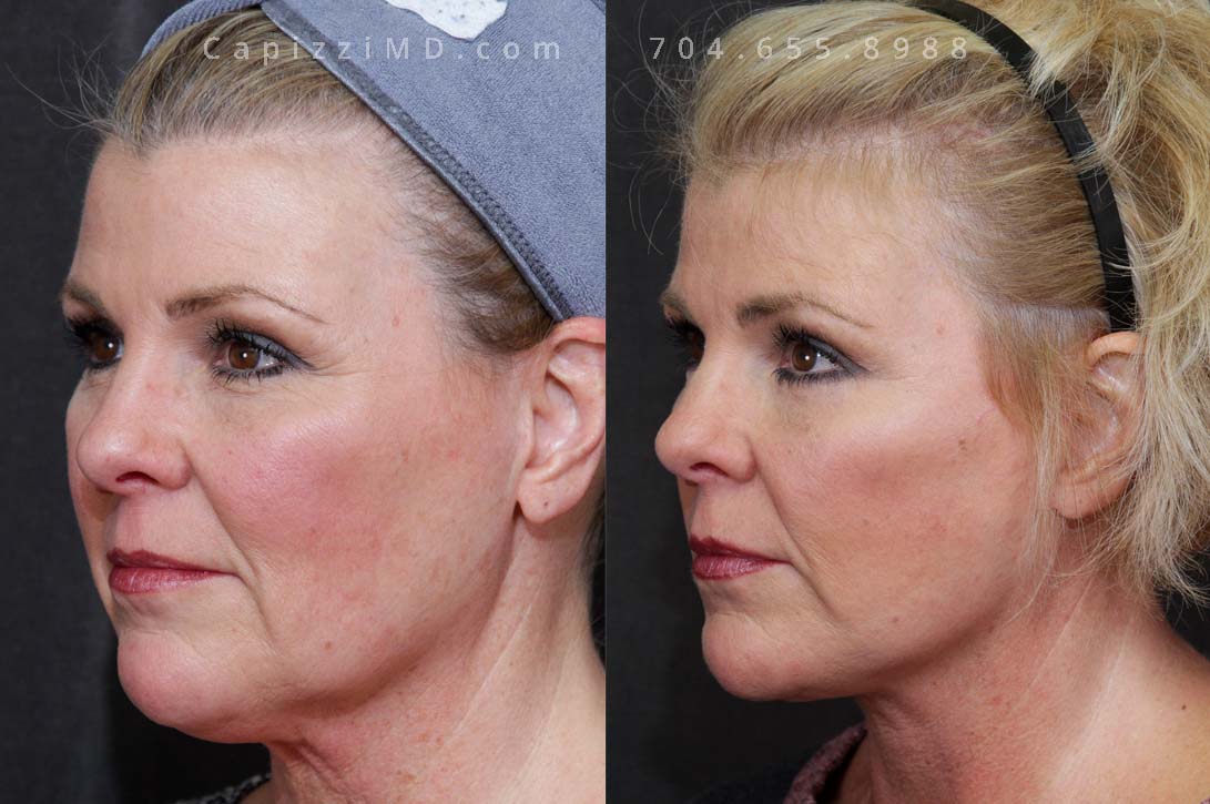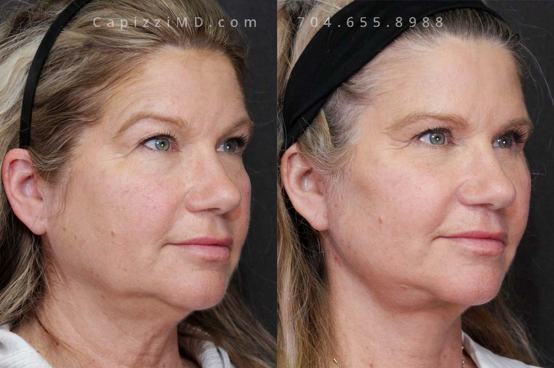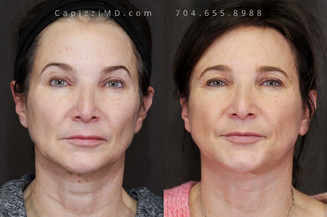 This patient sought a full face rejuvenation to resolve skin laxity and improve the contour of her face globally. This resulted in a refreshed result, with significant improvements in the jowls, neck, brow, and eyes.