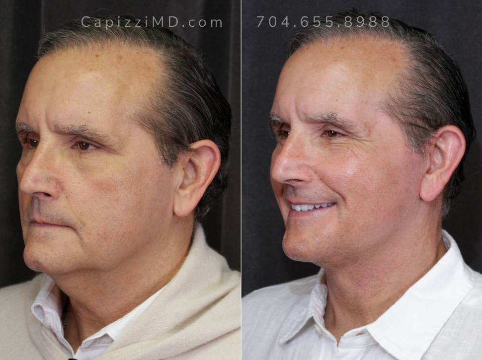 The male patient desired a face and neck lift to diminish the visible signs of aging and achieve a more youthful appearance. The additional laser treatment triggered collagen and elastin development, to improve his skin’s quality in combination with the surgical procedures.