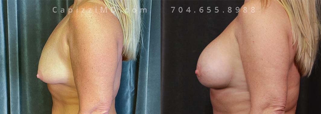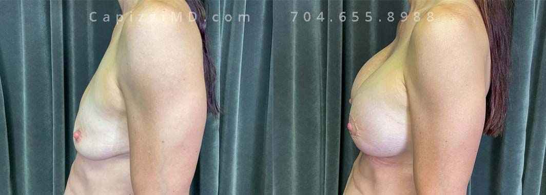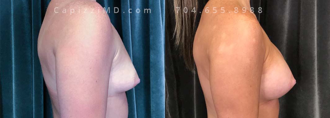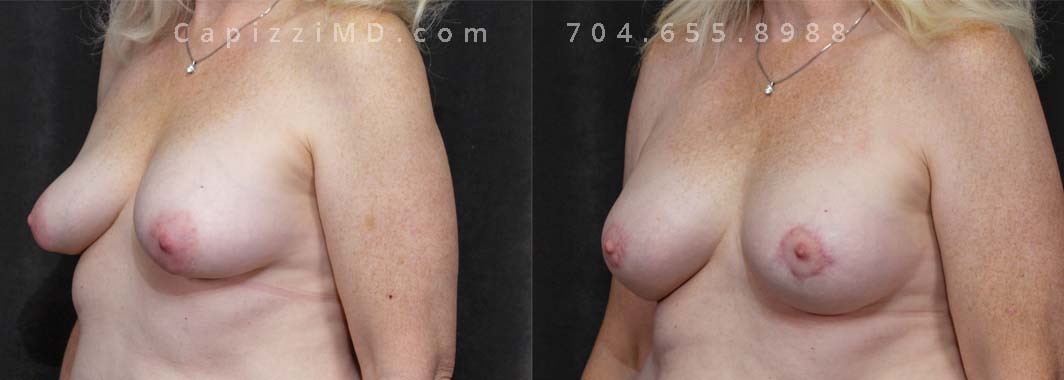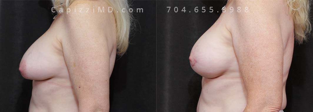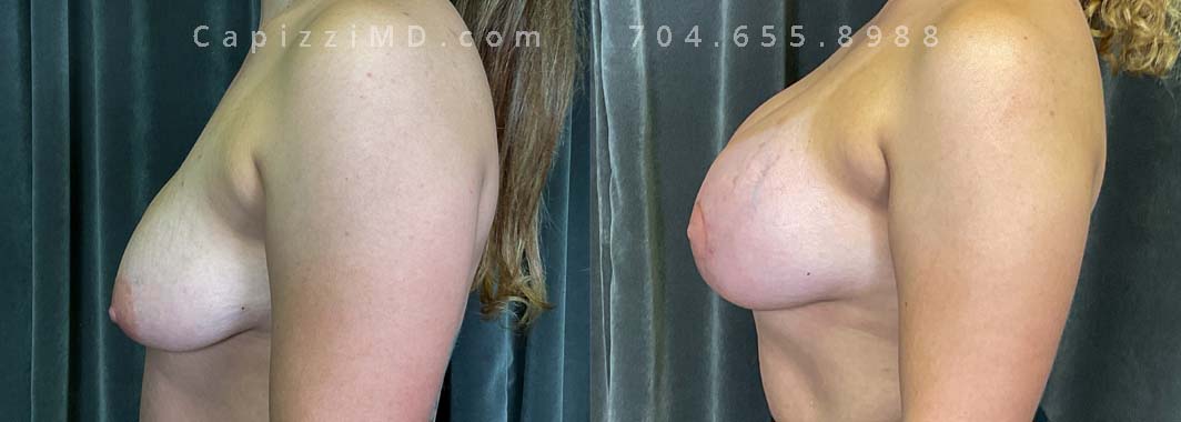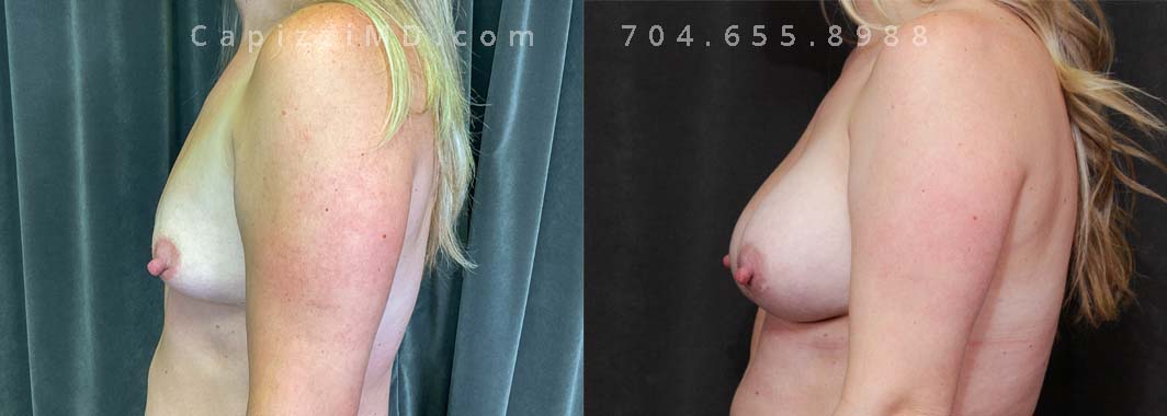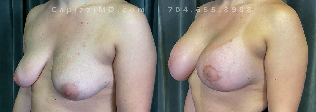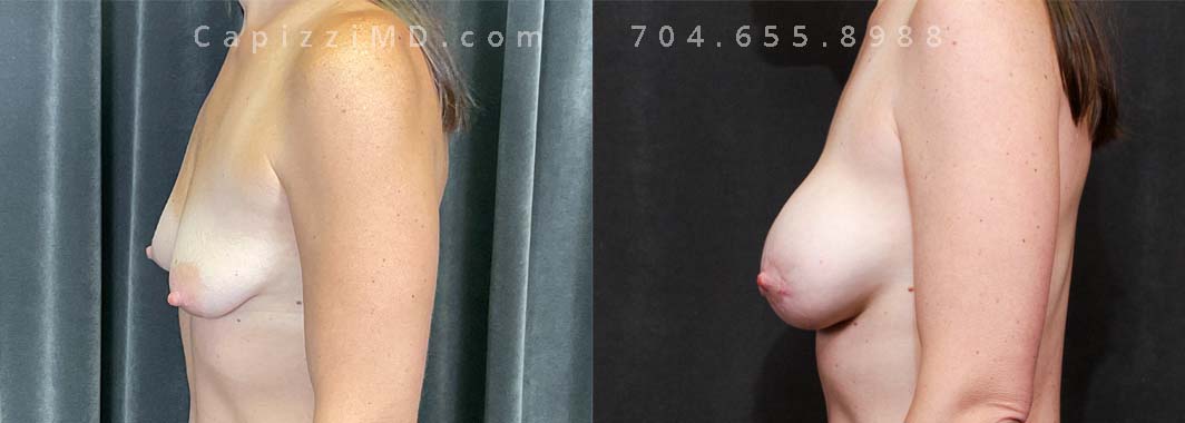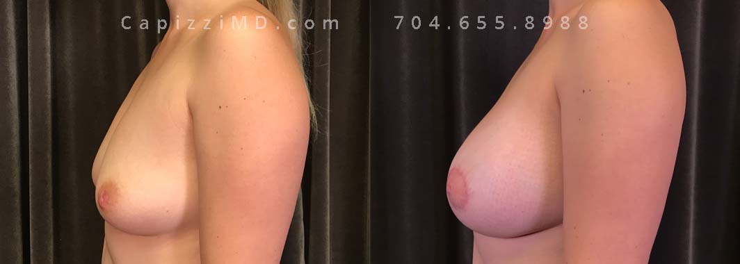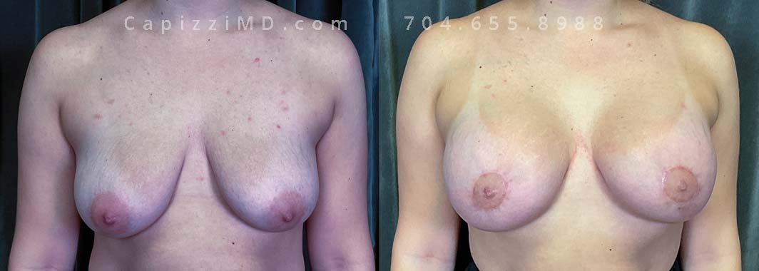 This patient wanted to increase her upper pole volume and lift. She received a mini/Benelli lift with breast augmentation. Sientra Smooth Round HP 470cc implants.