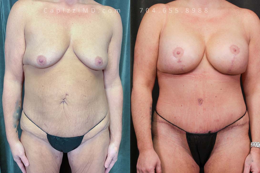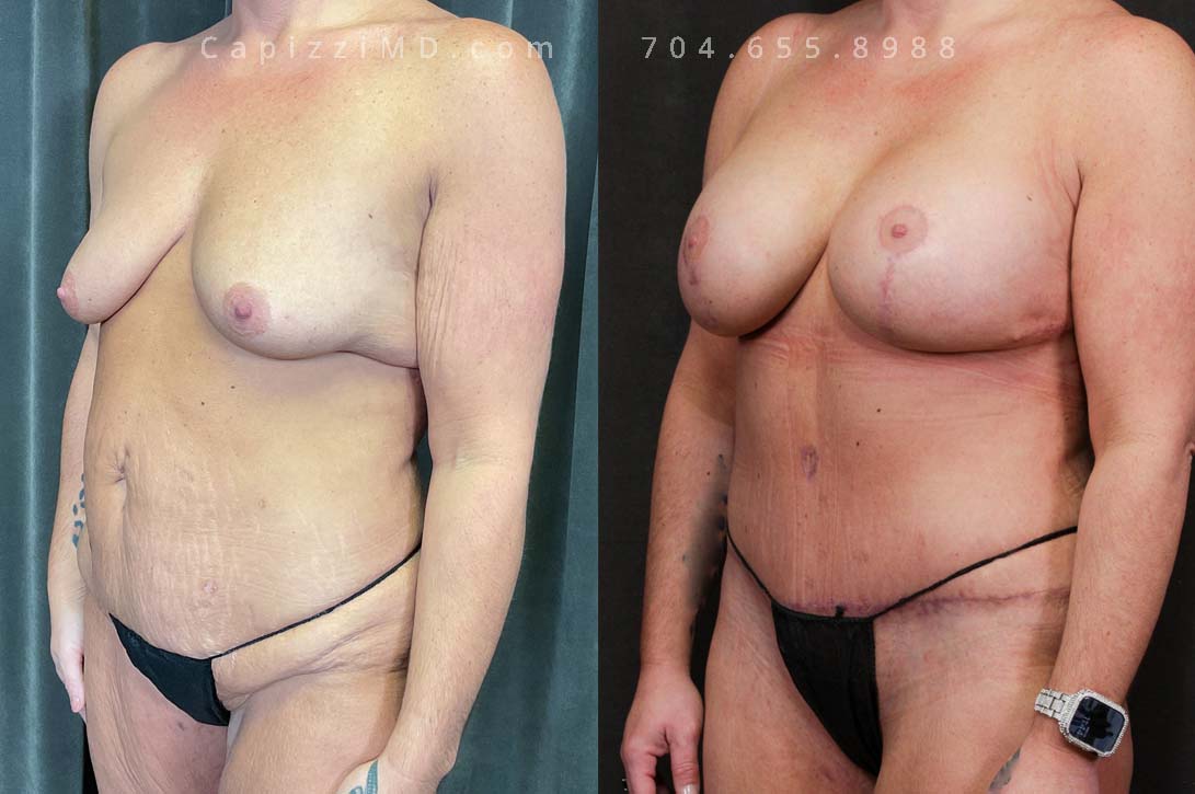Yearning for the confidence of her pre-baby shape, this woman achieved it through a combined approach. A modified breast lift with augmentation added volume and lift, while a tummy tuck and liposuction sculpted her abdomen, defining her waist and hips.
