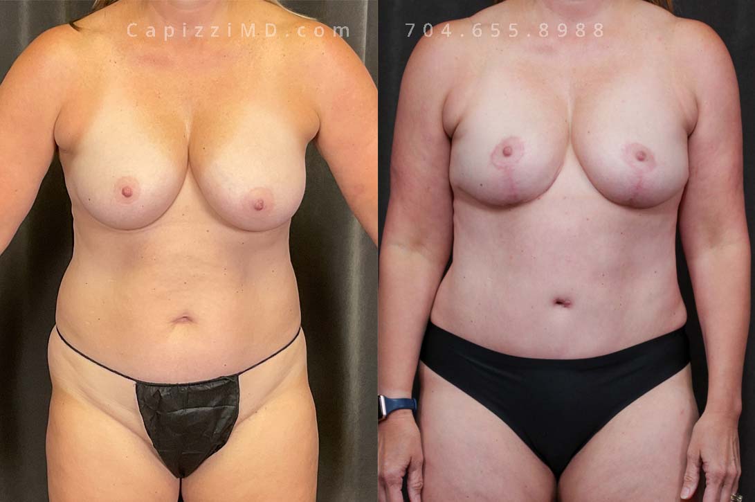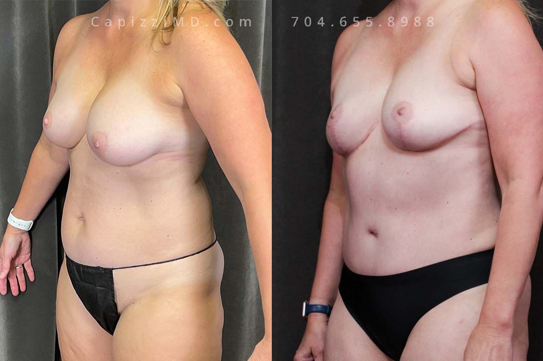 Embracing a lifestyle shift, this patient underwent a modified lift and implant exchange, reshaping her silhouette for a look that reflected her new self.
