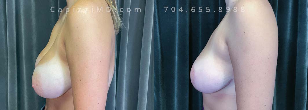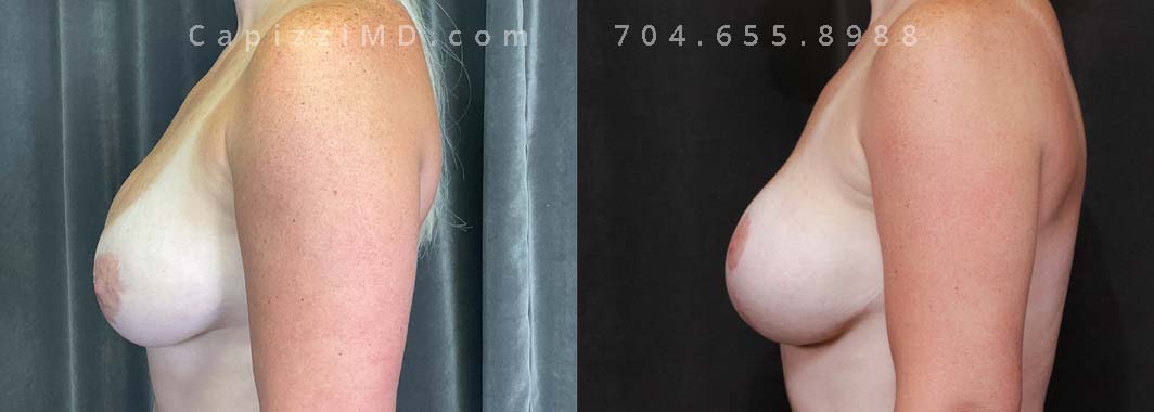 This patient had a bilateral implant rupture and the recommendation was replacement. Replacing her implants and combining it with a modified lift gave her the look she wanted.